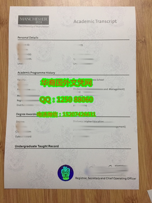 The University of Manchester Diploma英国曼彻斯特大学毕业证成绩单