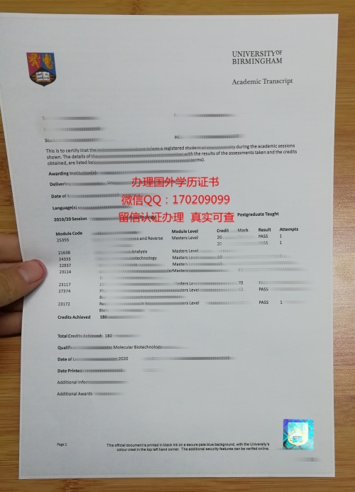制作英国伯明翰大学成绩单University of Birmingham Diploma