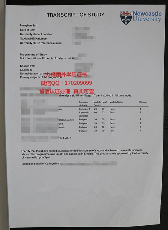 制作英国纽卡斯尔大学成绩单Newcastle University Diploma