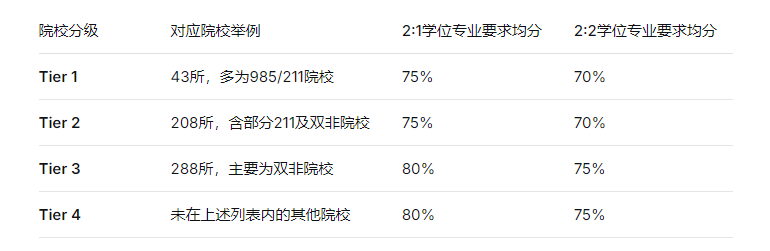 若你在Tier 1(如985/211高校) 完成大一,均分70%-75% 可申请大一。